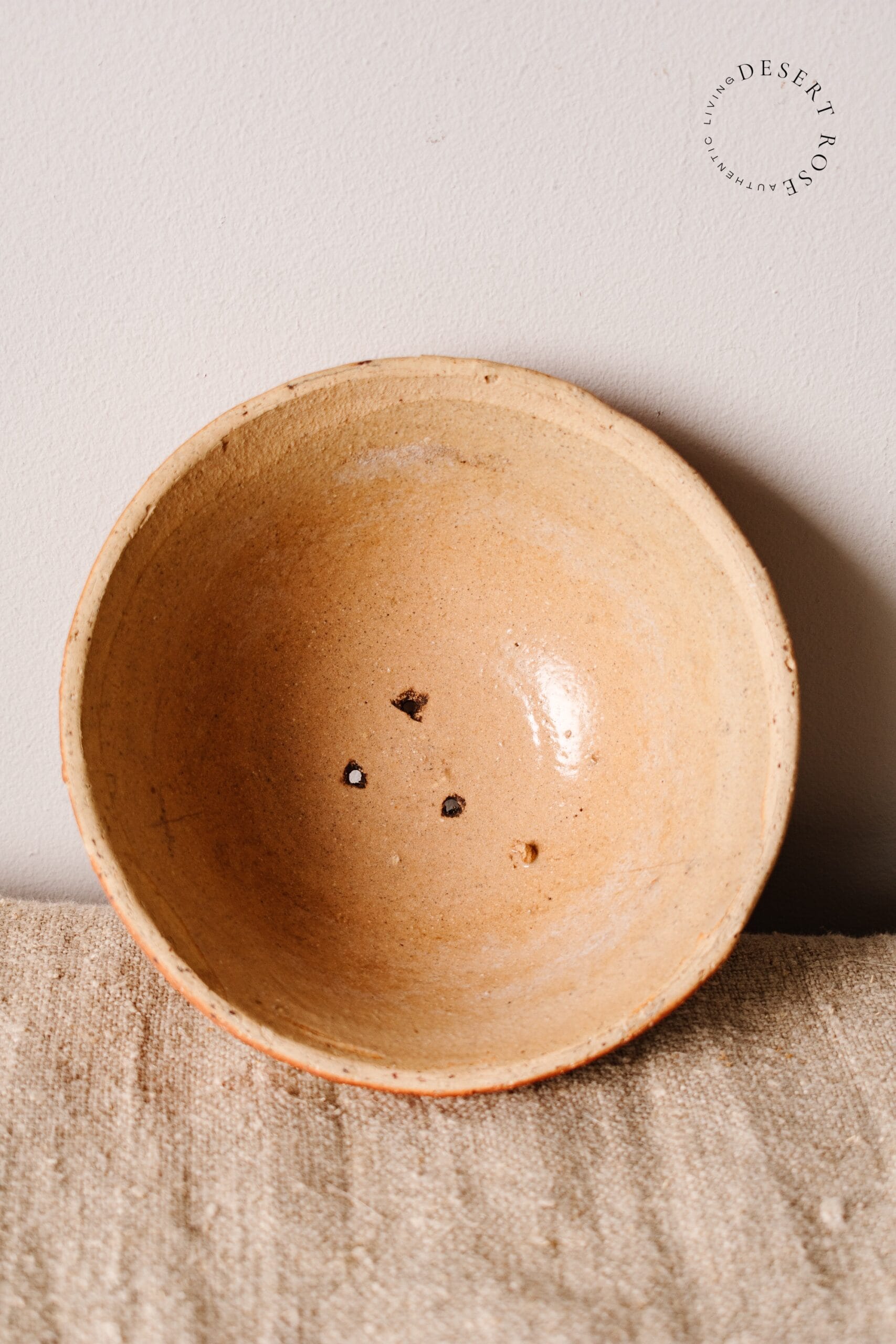 Een oude Franse fruittest / vergiet handgemaakt van terracotta in een prachtige terra kleur. Ideaal voor het wassen, uitlekken en serveren van vers fruit.