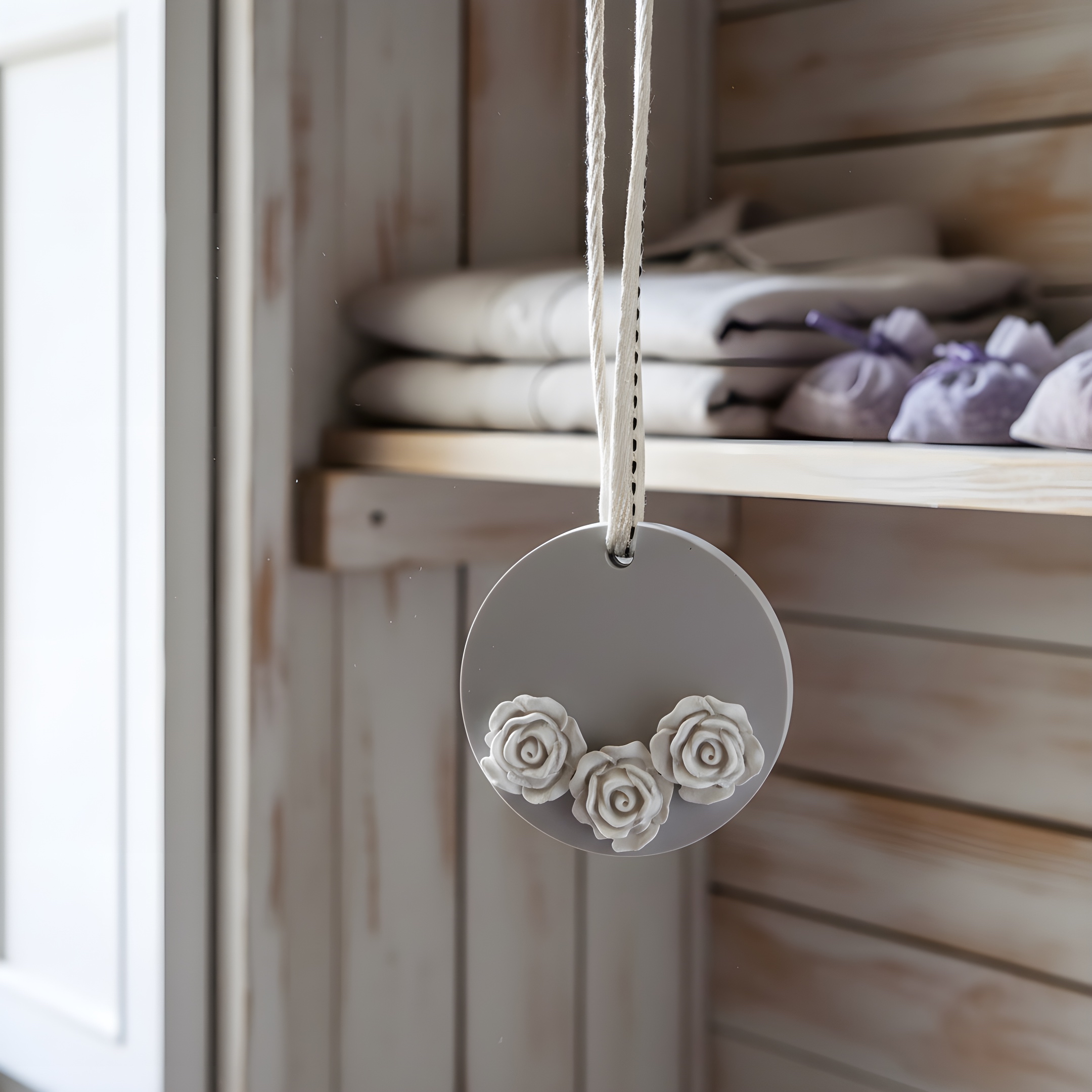 Maak je auto, kledingkast of badkamer heerlijk fris met deze set van 3 handgemaakte geurhangers voor aromatherapie. Geen chemische sprays of sterke autoparfums meer: deze aroma diffuser hanger geeft een subtiele geur af op basis van pure essentiële olie die je zelf toevoegt. Perfect voor wie op zoek is naar een natuurlijke kamergeur, auto geurverspreider of subtiele wc-verfrisser – zonder de hoofdpijn van sterke chemicaliën. Ideaal als je gevoelig bent voor sterke geuren maar toch je ruimte natuurlijk wilt verfrissen. Het elegante ronde design met delicate roosjes hangt stijlvol aan je autospiegel, kastdeur of haakje – decoratief én praktisch.