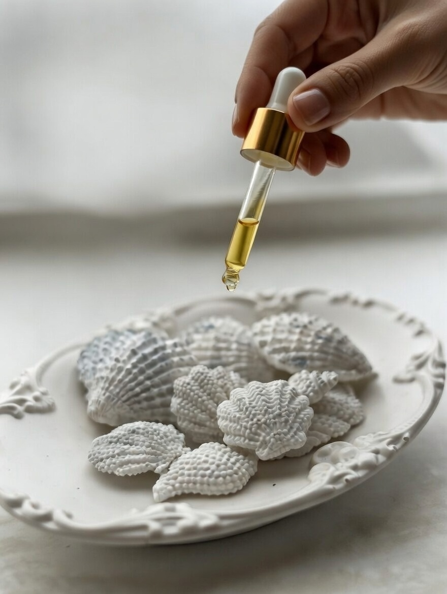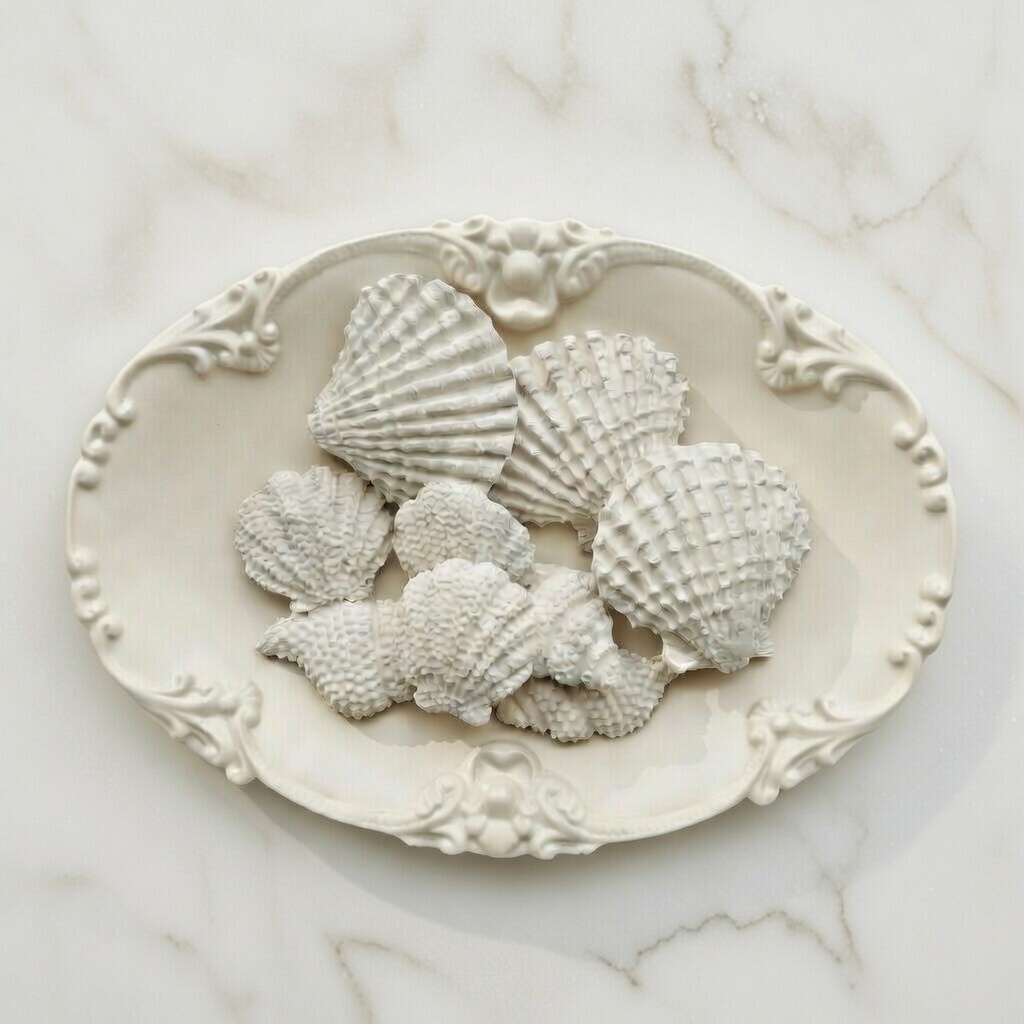 Deze aroma stenen zijn handgemaakt en hebben een prachtige, matte witte afwerking met subtiele grijs witte marmer effecten die doen denken aan echte zeeschelpen. Een paar druppels olie op de schelpjes laten de geur langzaam vrijkomen – ideaal voor een rustgevende, natuurlijke aromatherapie-ervaring.