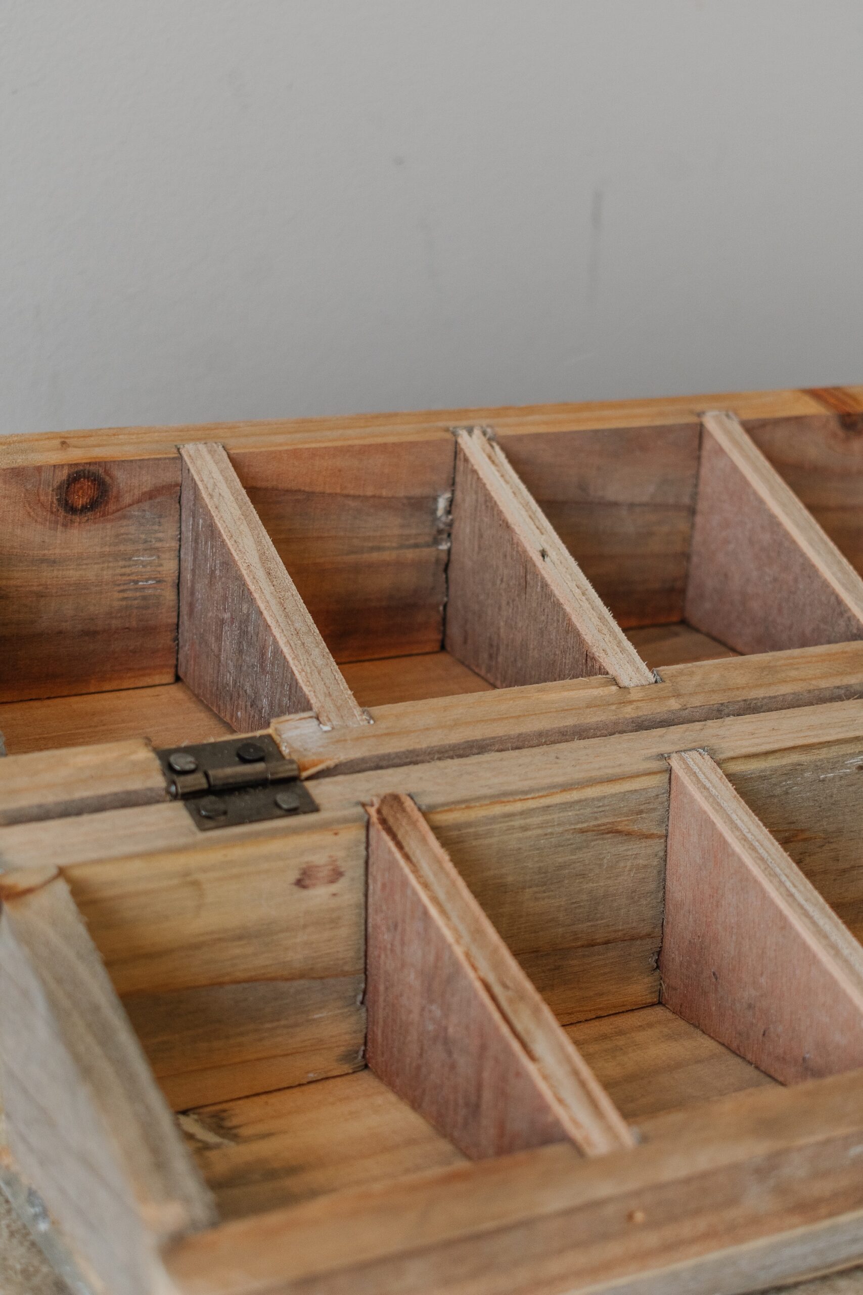 Geef je keuken een landelijke uitstraling met deze stijlvolle houten theedoos. Deze theedoos gaat diagonaal open en door het houtje waarmee je de doos opent, rechtop te zetten, is het een voetje geworden waar de deksel op staat. Zo heeft de doos maar liefst 12 vakken, perfect voor het overzichtelijk opbergen van theezakjes. Dankzij de opklapbare deksel blijft alles stofvrij en overzichtelijk. De rustieke grijze afwerking met vintage look maakt deze theedoos een sfeervolle aanvulling op je interieur. Ook ideaal voor een B&B.