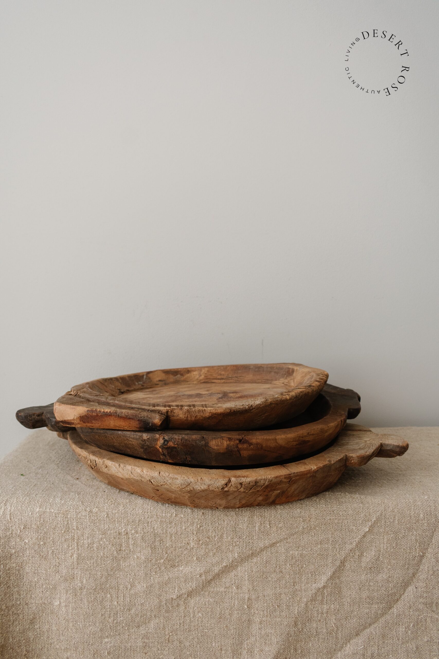 Het verweerde hout van het houten chapati bord geeft het een rustieke uitstraling, waardoor het een perfecte aanvulling is voor een landelijk of wabi sabi interieur. Gebruik deze tray als een stijlvolle fruitschaal, een decoratief accent op tafel, of als een opvallend element in een landelijke of bohemian interieur. De natuurlijke houttinten zorgen voor een warme, tijdloze uitstraling die moeiteloos in elk interieur past.
