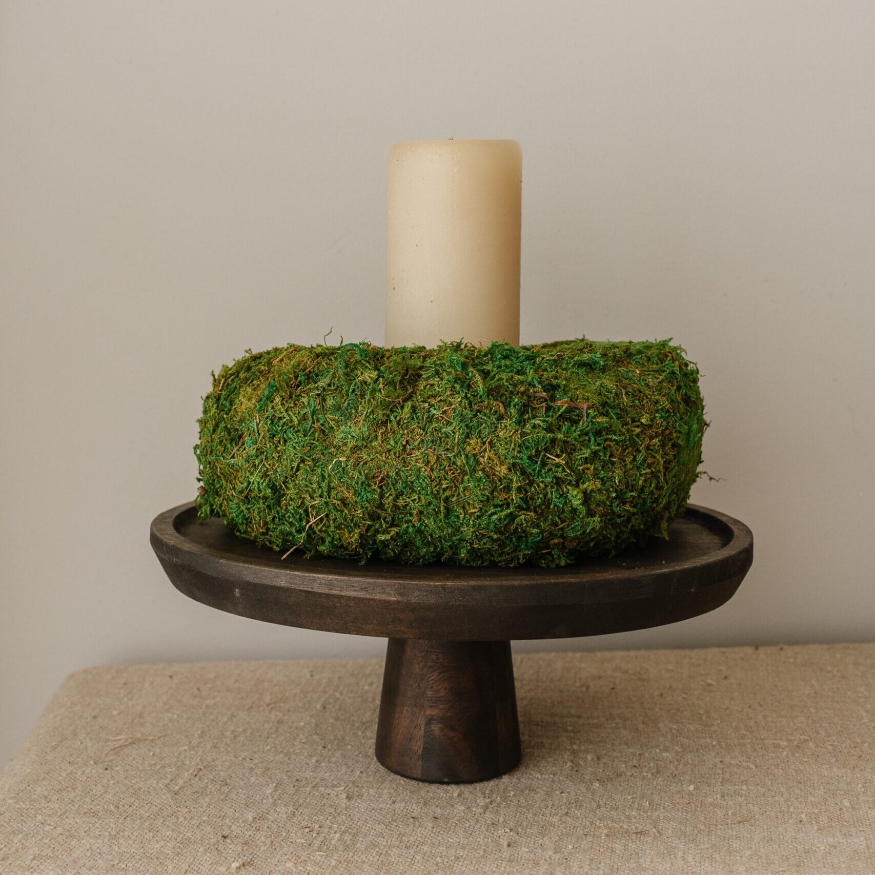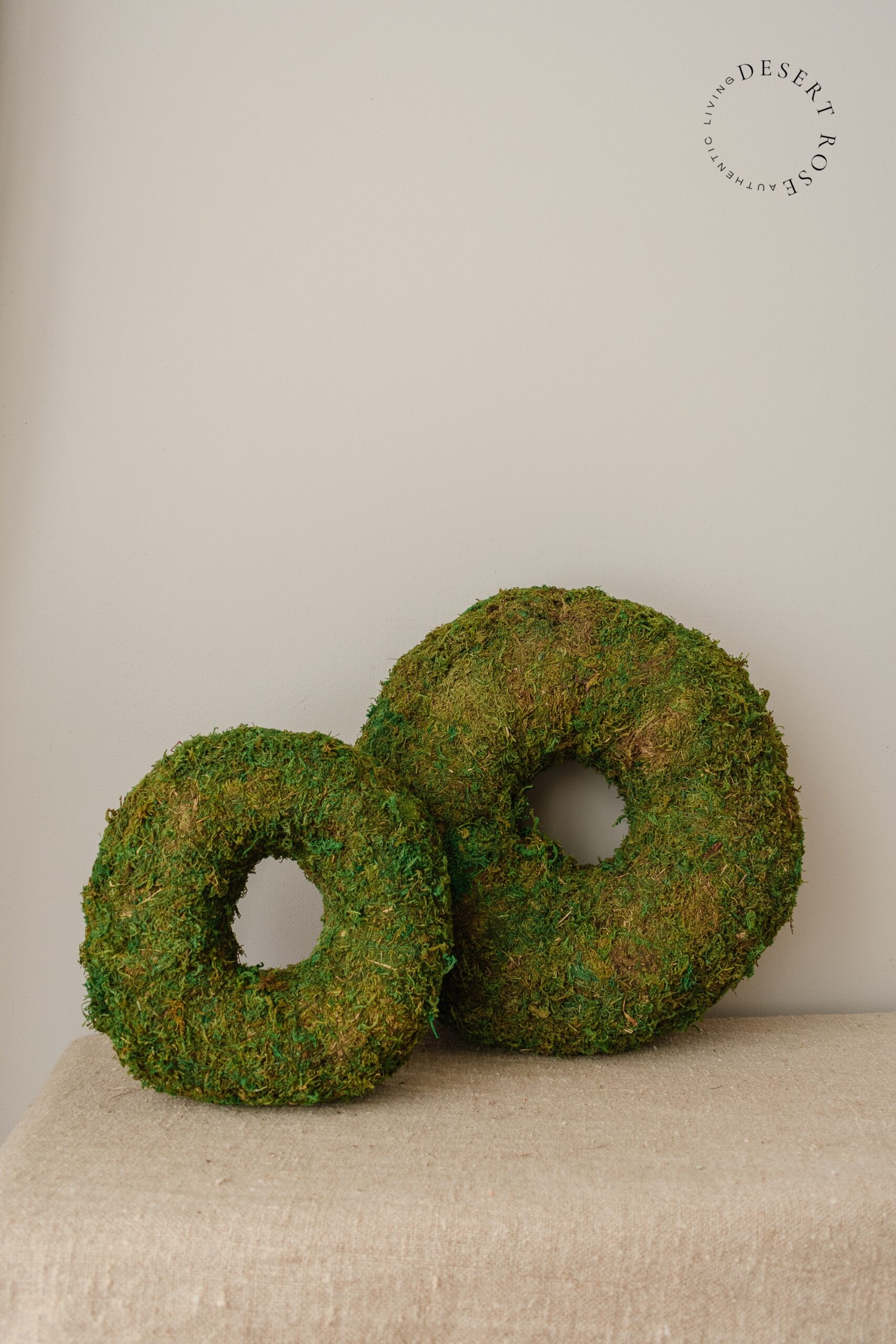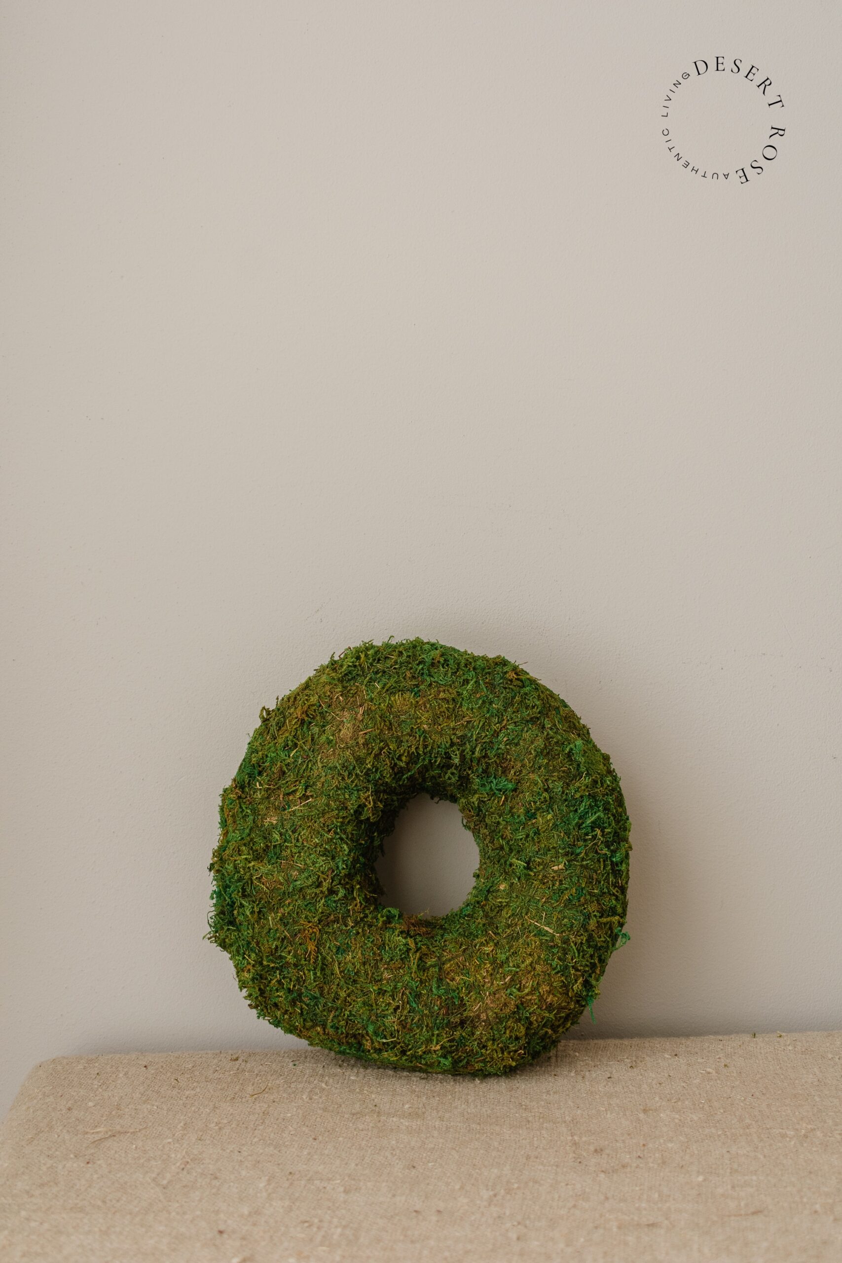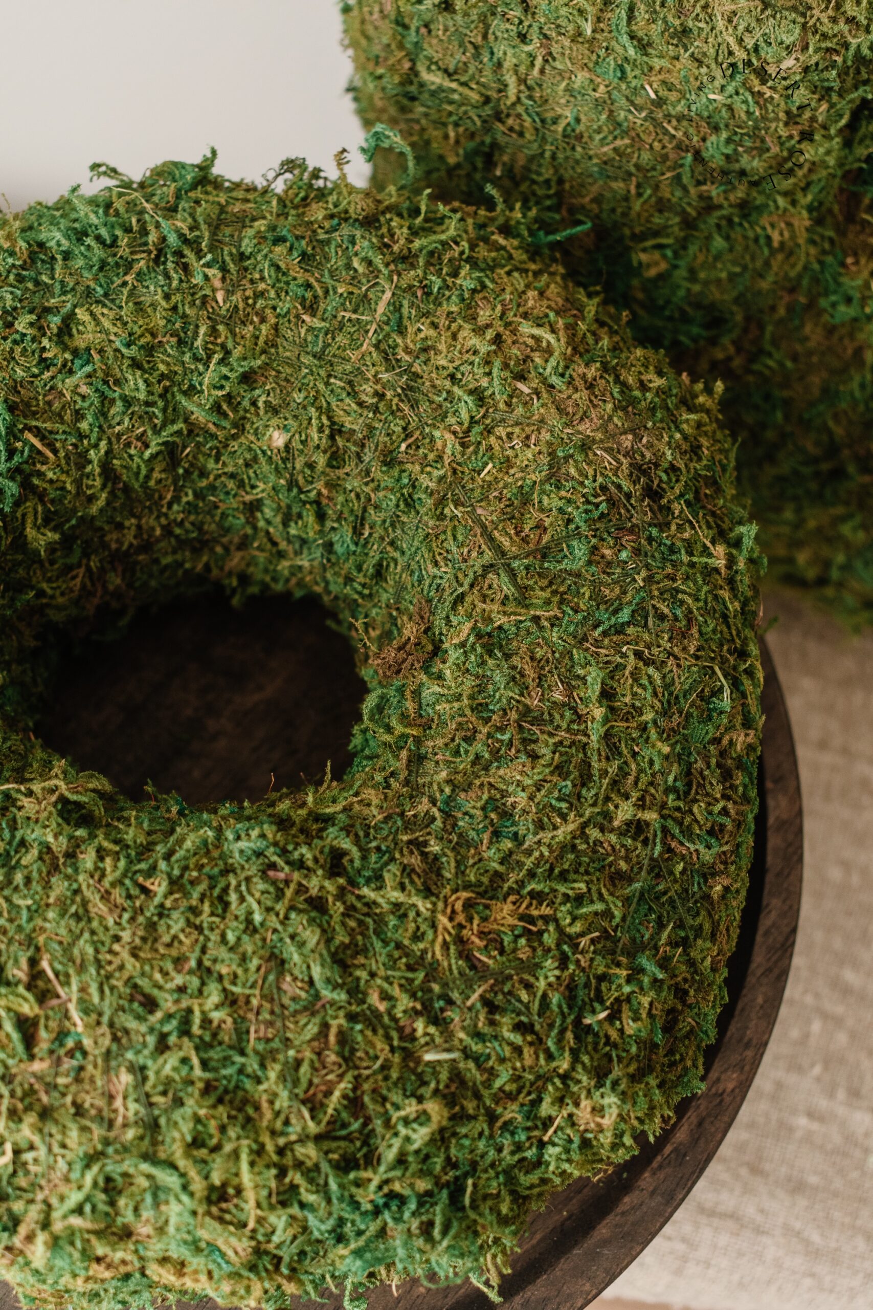 Een erg volle mos krans met een diameter van ongeveer 25cm. Dankzij het formaat is de krans ideaal om op te hangen aan een deur, raam of muur, of als decoratieve basis op een plateau of in een houten schaal.