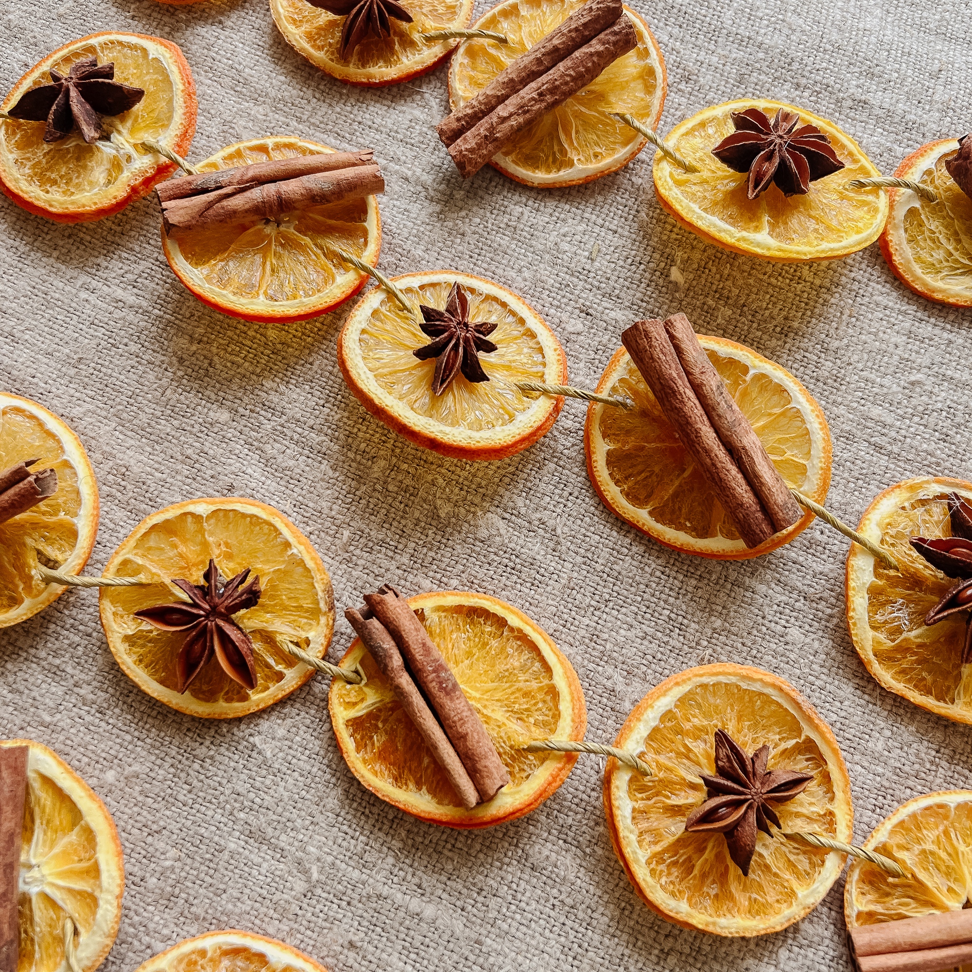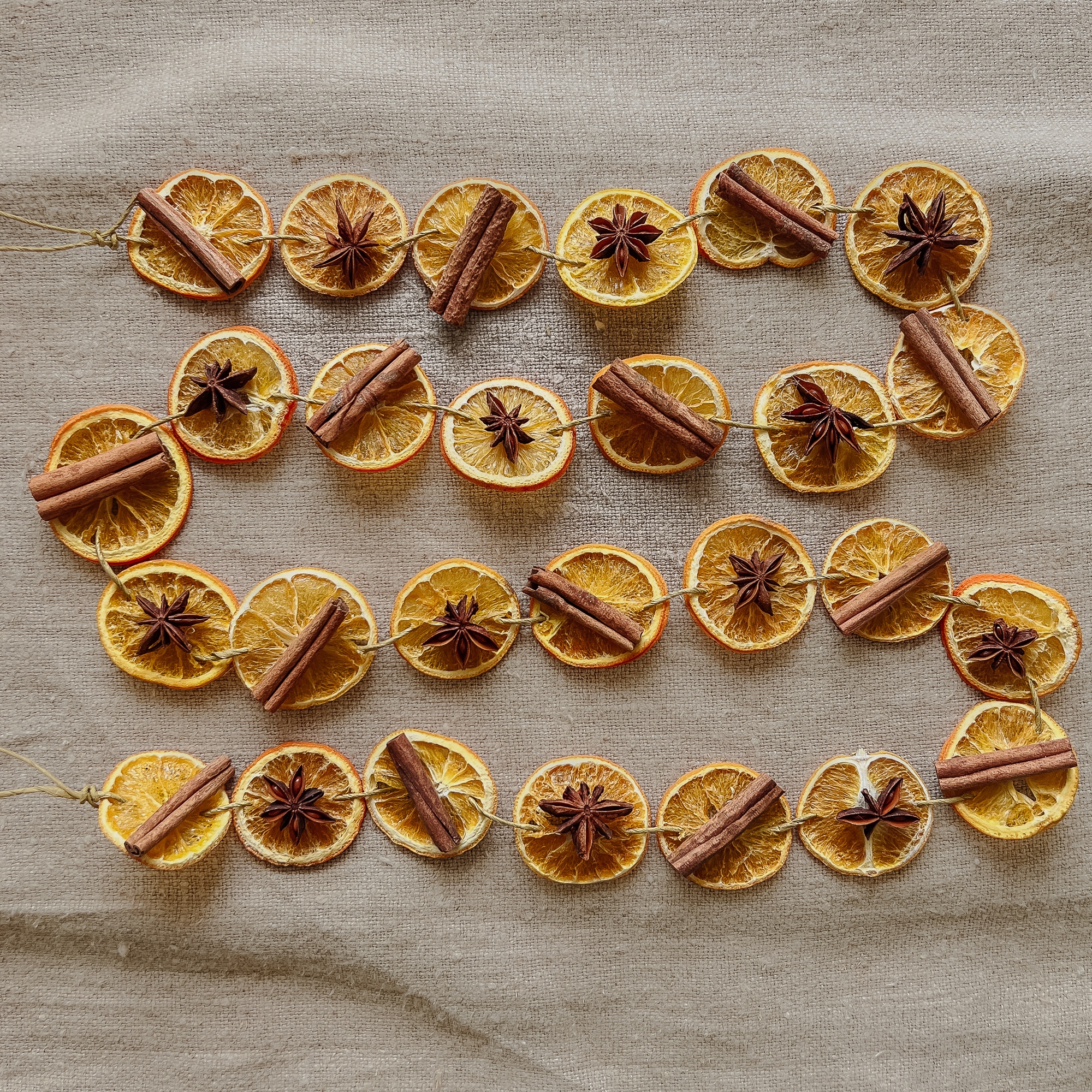Haal de warme winter- en kerstgeur in huis met deze slinger van gedroogde sinaasappelschijfjes met kaneel en steranijs. Perfect als kerstdecoratie of om tijdens de wintermaanden een gezellige sfeer te creëren.