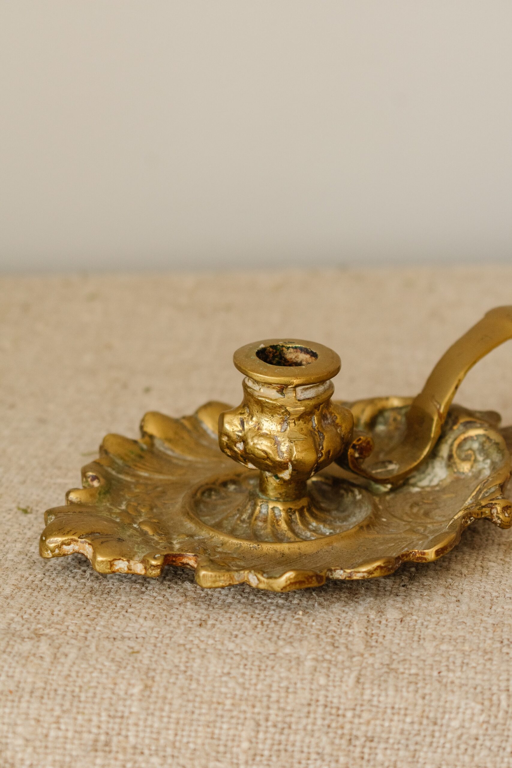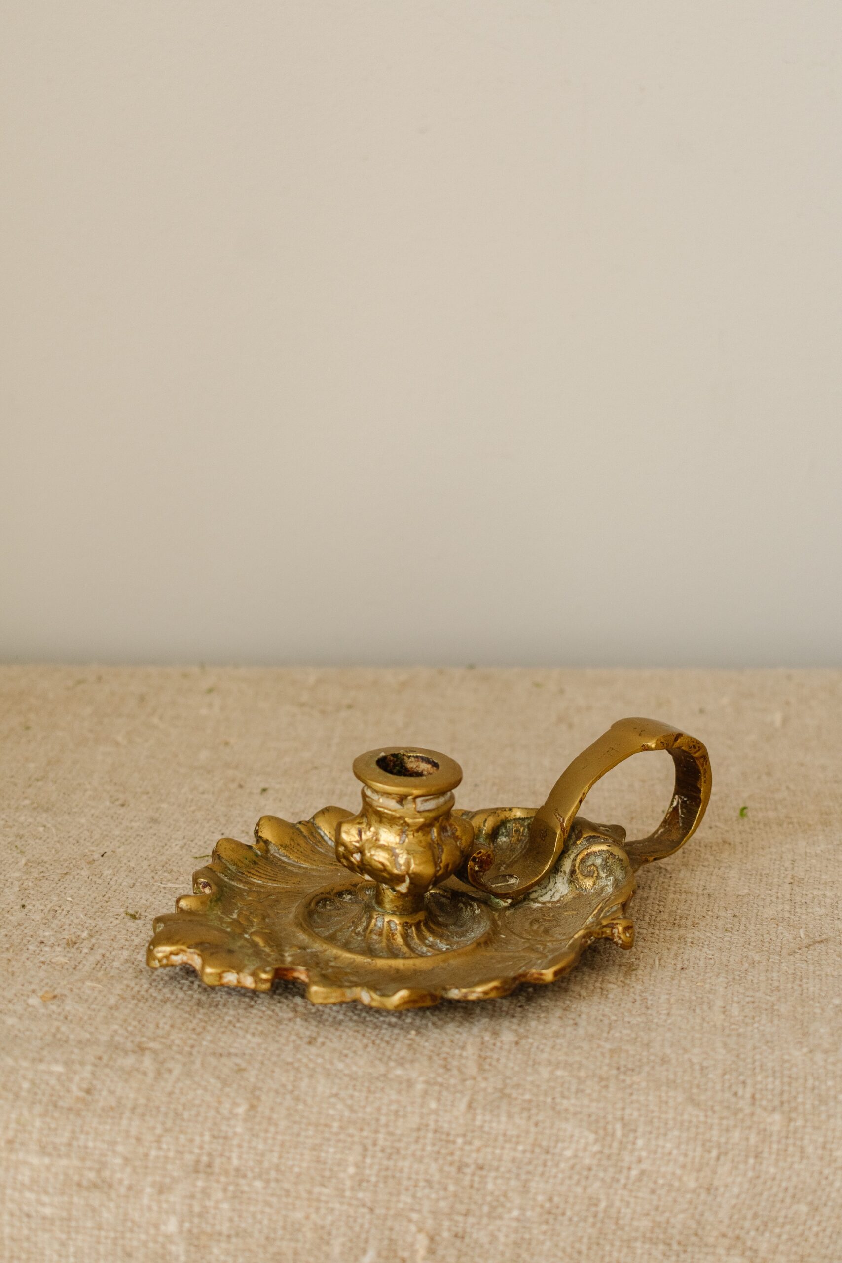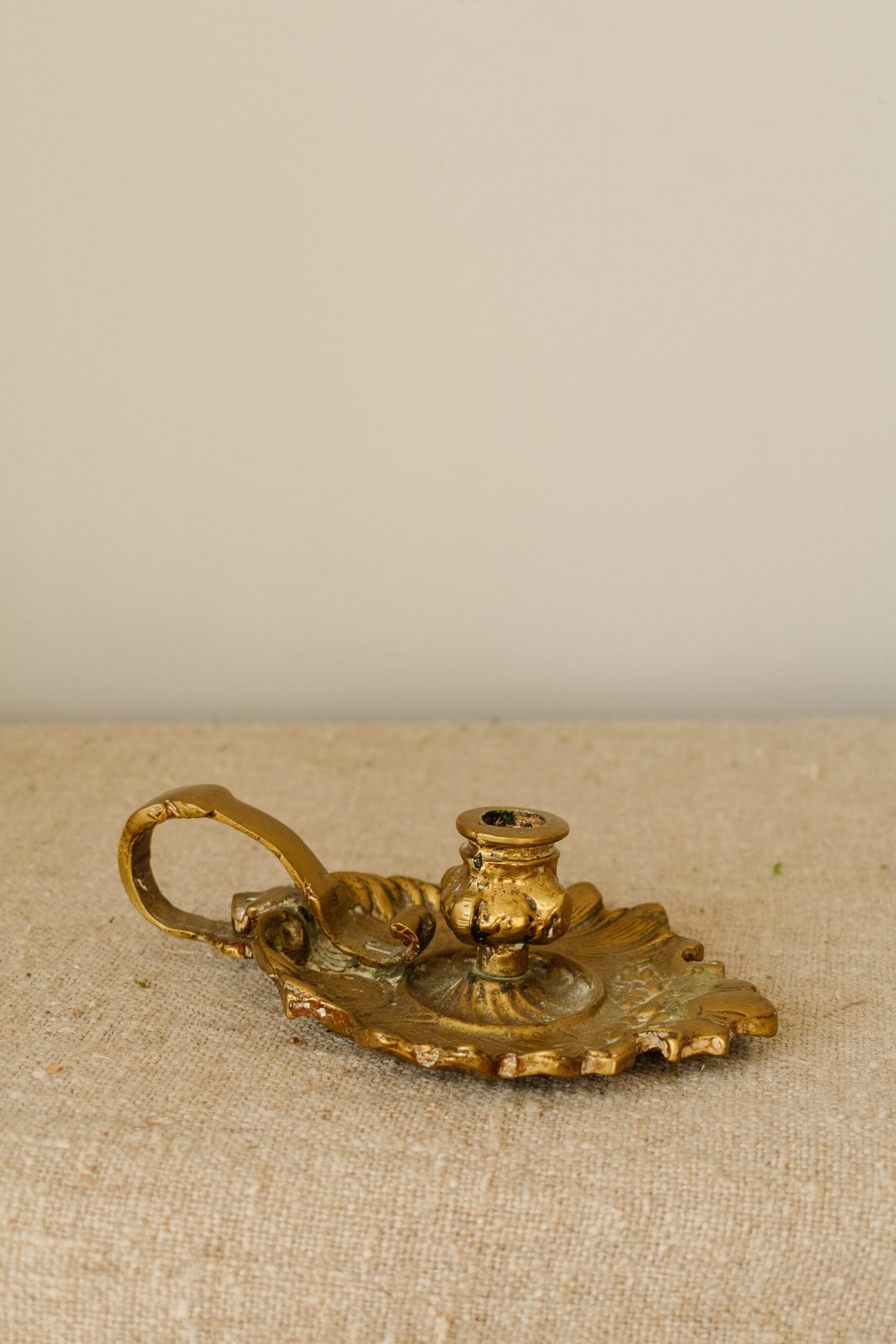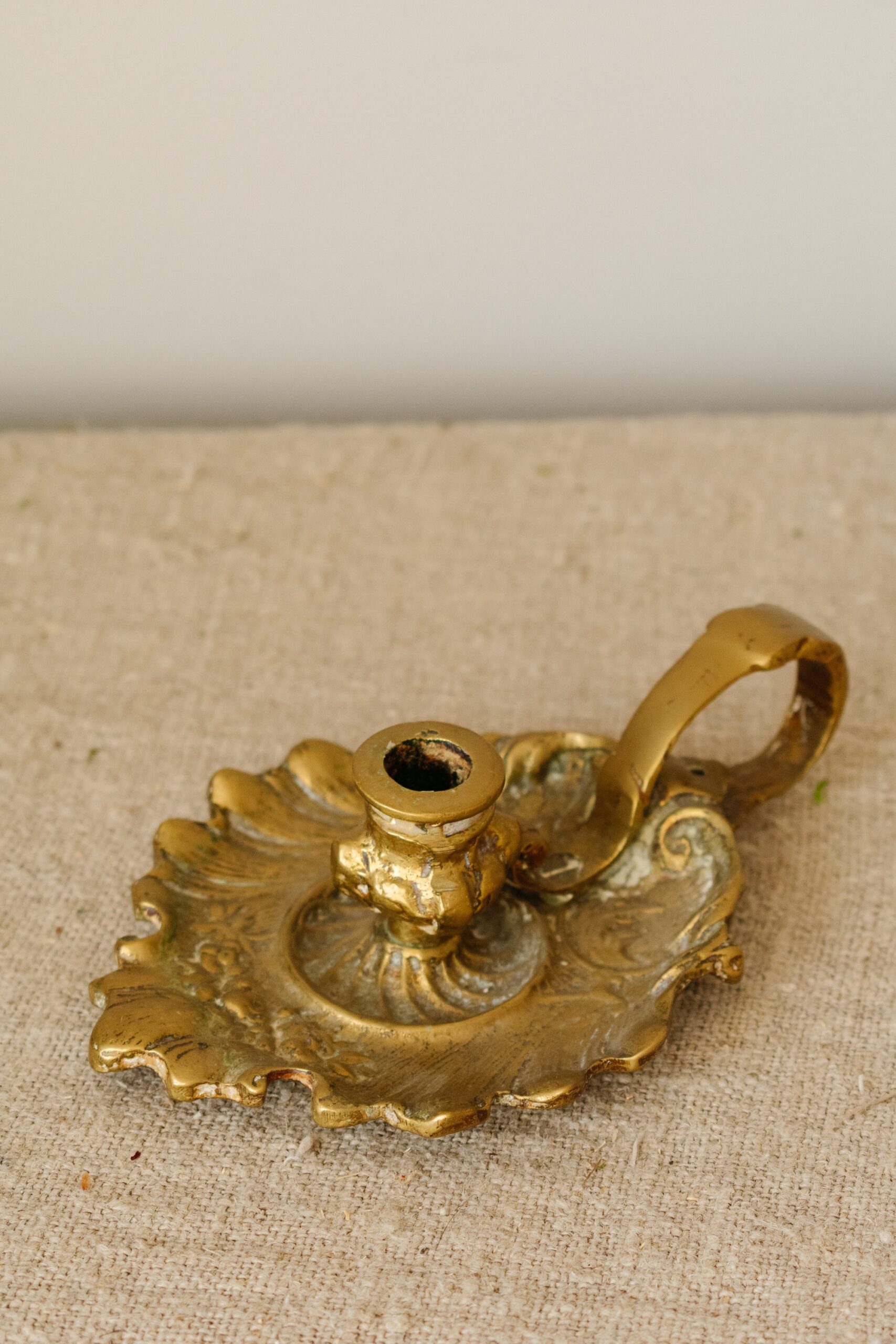 Deze antieke blaker is een stijlvolle en functionele kandelaar, handgemaakt van massief koper. De blaker heeft een klassiek ontwerp met een handige draagring, zodat hij makkelijk verplaatst kan worden. De ronde, decoratieve schaal met een golvende rand geeft het stuk een elegante uitstraling. Deze blaker is ideaal voor een dinerkaars en voegt een warme, nostalgische sfeer toe aan elke ruimte. Geschikt als decoratief item of als praktische kandelaar, perfect voor een klassieke, landelijke of vintage woonstijl.