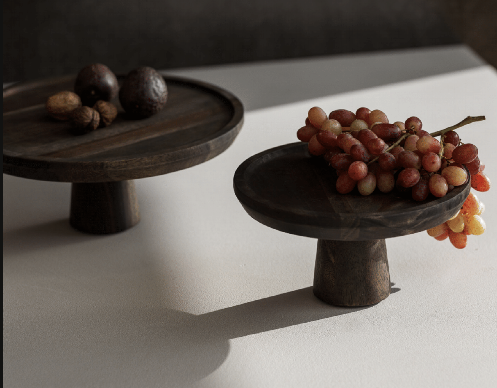 Een rond taartplateau gemaakt van acacia hout met een afmeting van 30xH12cm. Geschikt om taarten op te serveren of als mooi decorstuk met bijvoorbeeld een krans en kaars.