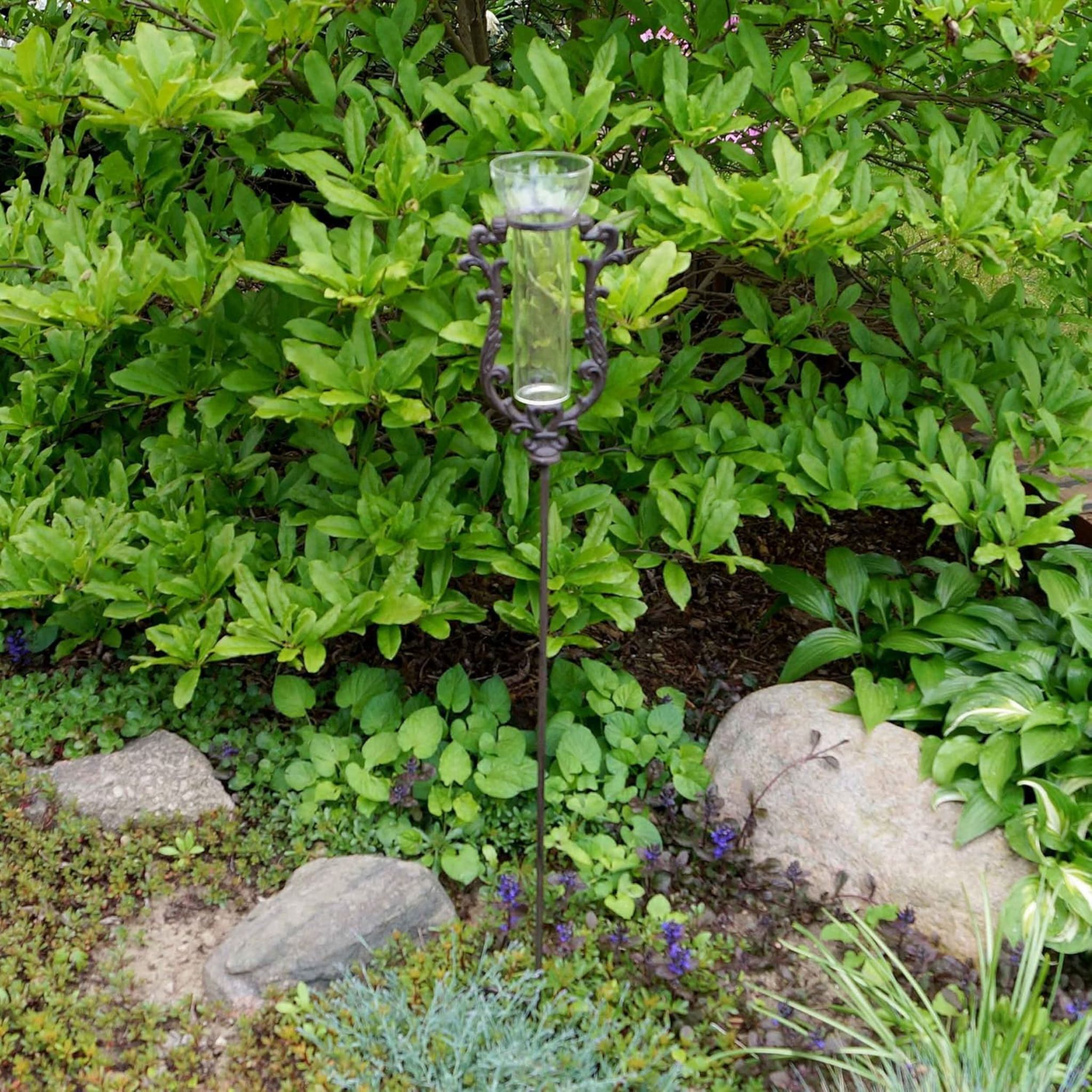 Deze elegante regenmeter combineert gebruiksgemak met een klassiek design. De sierlijke gietijzeren houder geeft een landelijke uitstraling, terwijl de glazen maatbeker eenvoudig afleesbaar is. Een eyecatcher voor elke tuin!