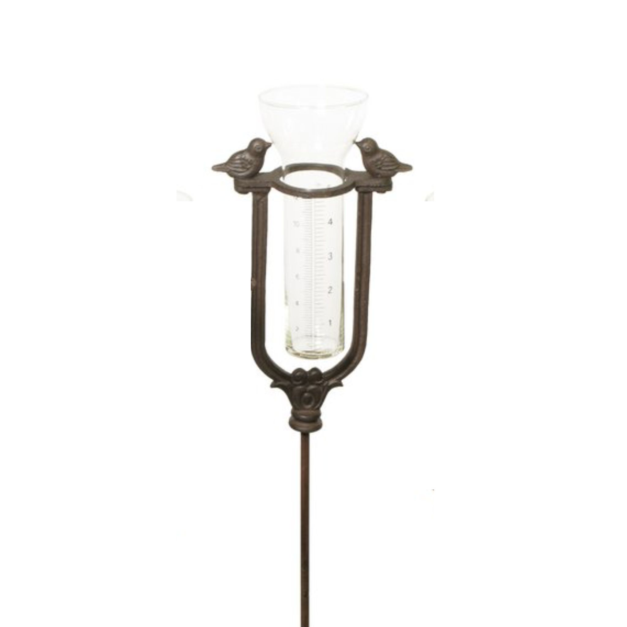 Breng sfeer én functionaliteit in je tuin met deze stijlvolle regenmeter van gietijzer. Het ontwerp is klassiek en sierlijk, met een hoge, cilindrische vorm en decoratieve zijpanelen die doen denken aan lantaarns of kandelaars. Het robuuste gietijzeren materiaal geeft hem een solide en duurzame uitstraling, terwijl de bruine kleur prachtig aansluit bij de natuurlijke omgeving van de tuin. De houder is voorzien van twee decoratieve vogeltjes en een afneembare glazen maatbeker. Niet alleen handig om de hoeveelheid regenval bij te houden, maar ook een charmante toevoeging aan je buitenruimte.